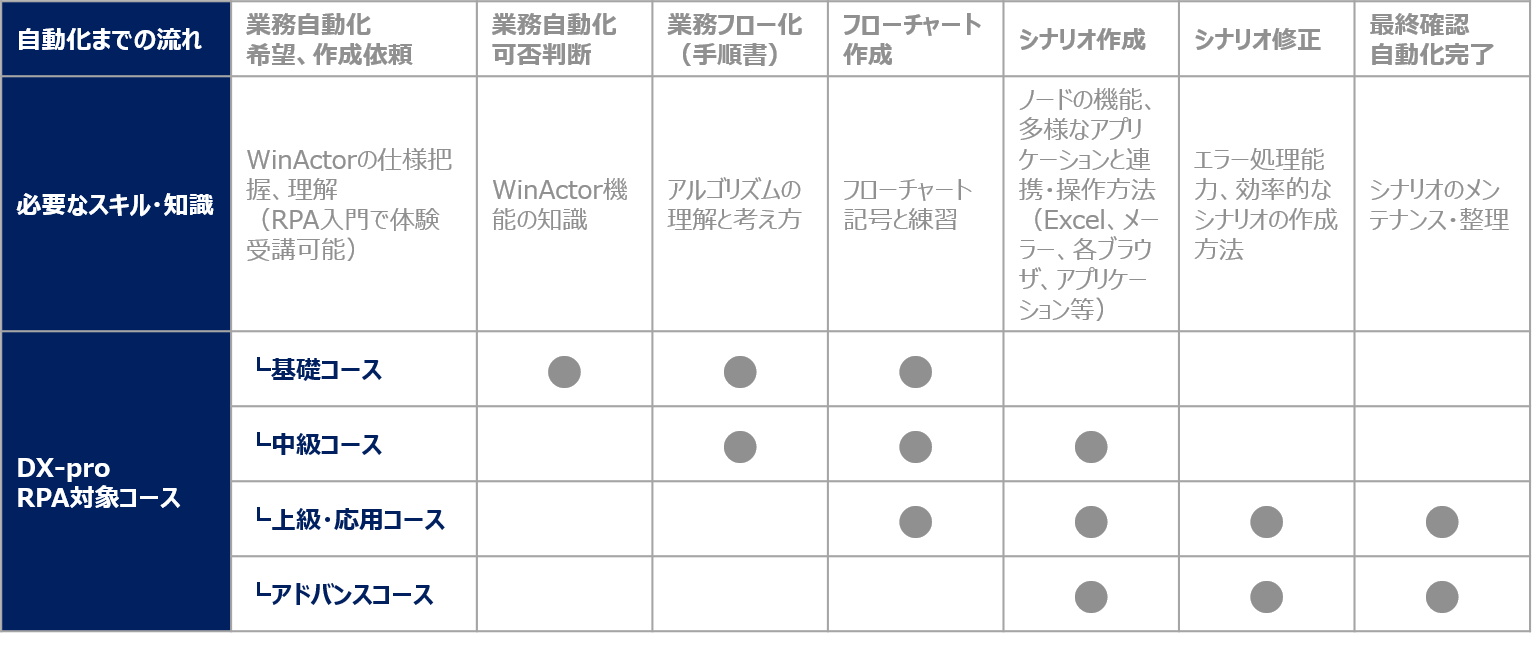 | DX-pro RPA対象コース |